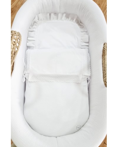 Los saquitos de capazo son la manera más práctica para vestir el carrito. Es como una camita completa para bebe, incluye sábana con tira bordada y un salvababas.