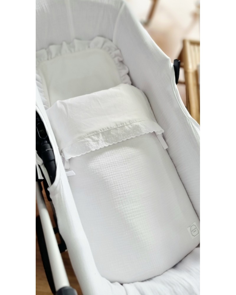 Los saquitos de capazo son la manera más práctica para vestir el carrito. Es como una camita completa para bebe, incluye sábana con tira bordada y un salvababas.